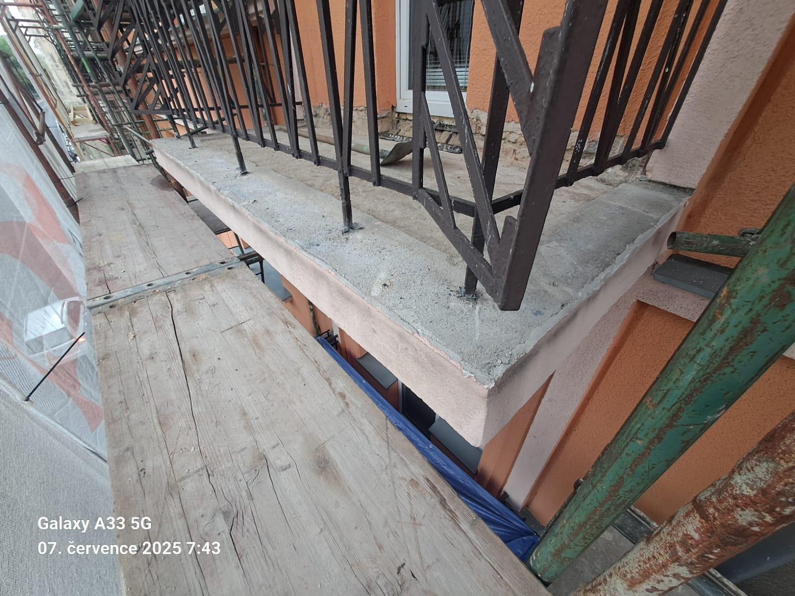 21. srpna 2025Provádíme opravu balkonových podest - nová betonová mazanina, nová hydroizolace, nová dlažba. Dále dojde k úpravě kotveni zábradli z čela balkonu a následnému nát...