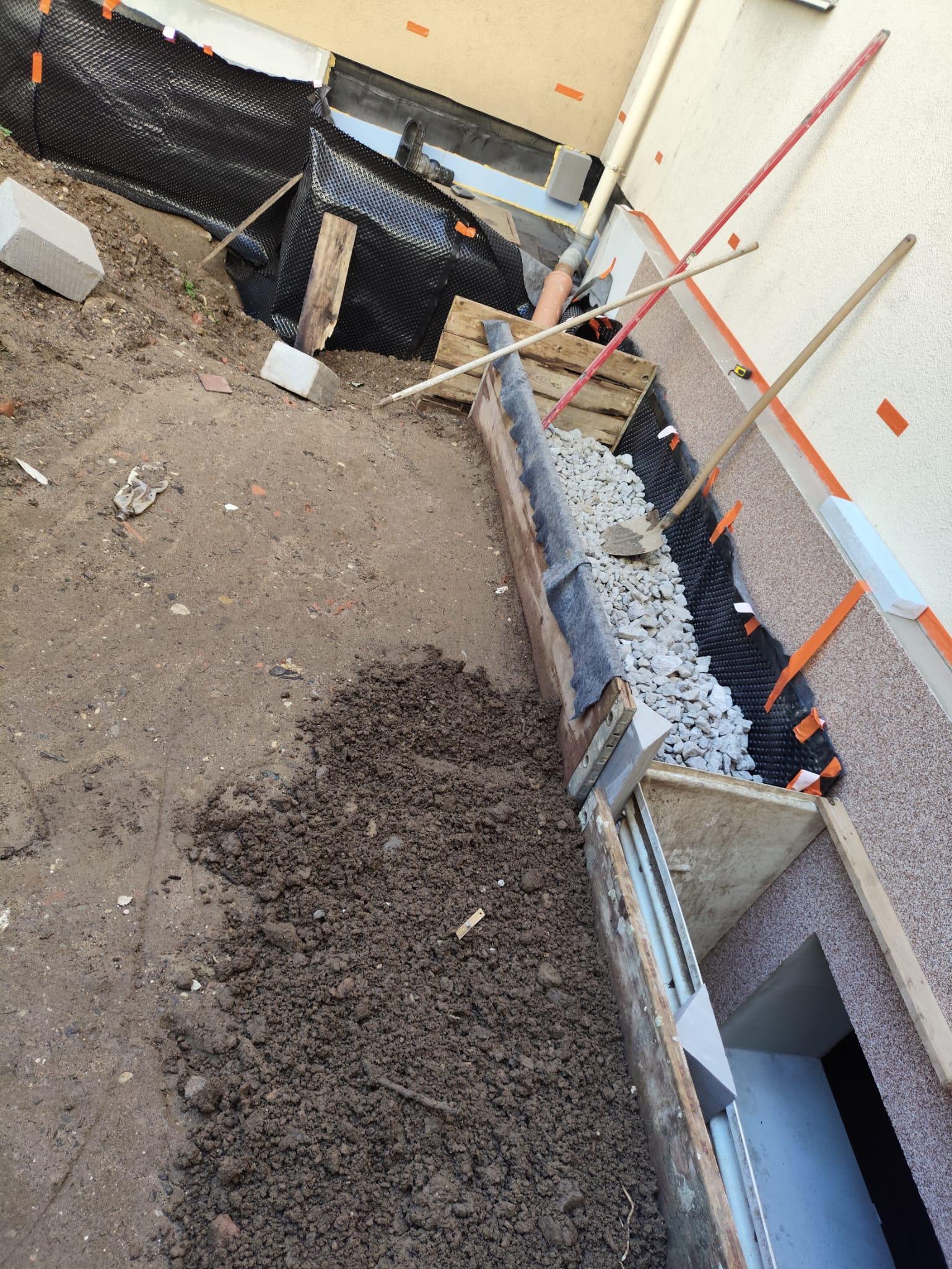 12. září 2025Pokračujeme v pracích na hydroizolaci spodní stavby. Teď probíhá betonování obrubníku a úprava terénu....